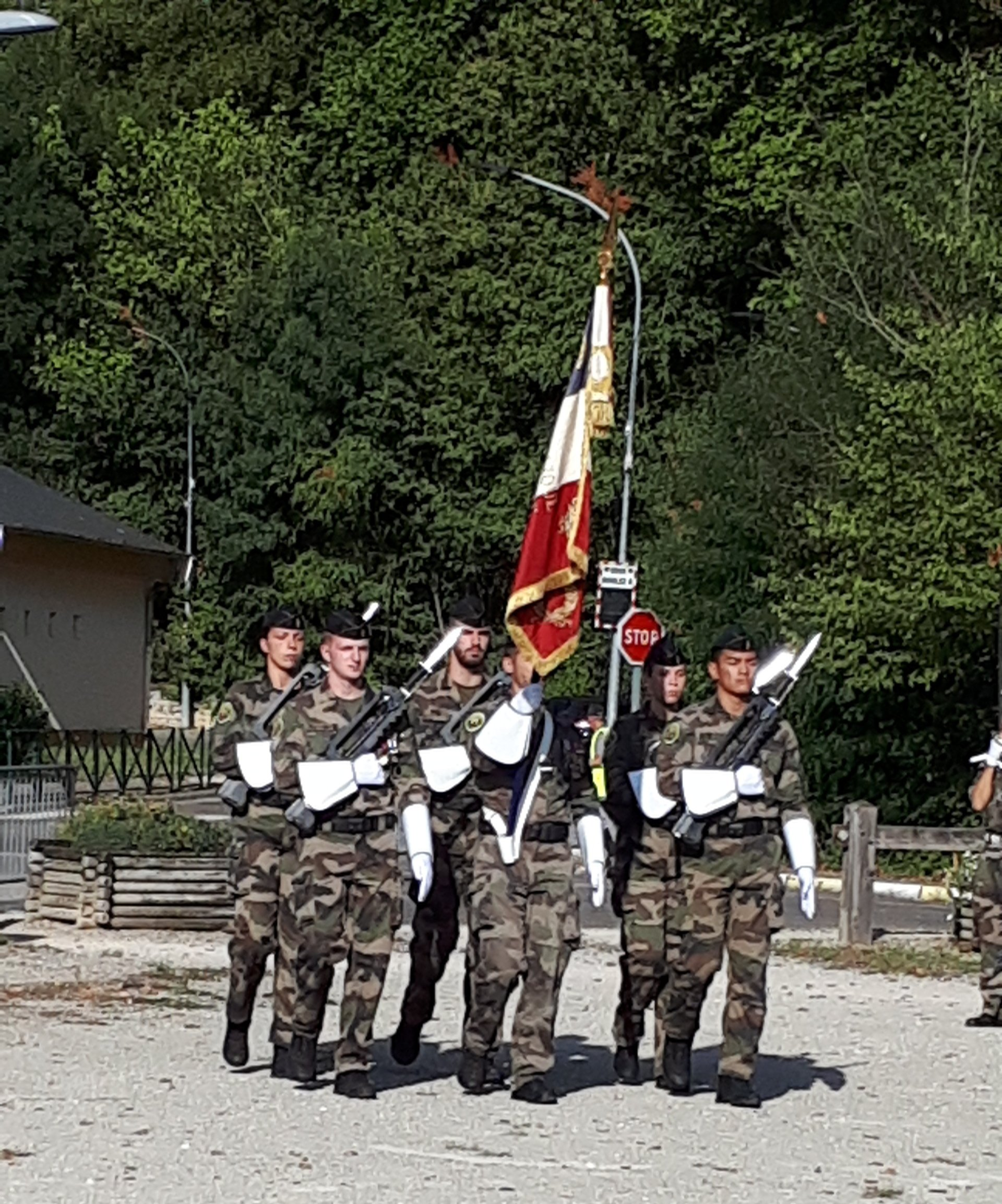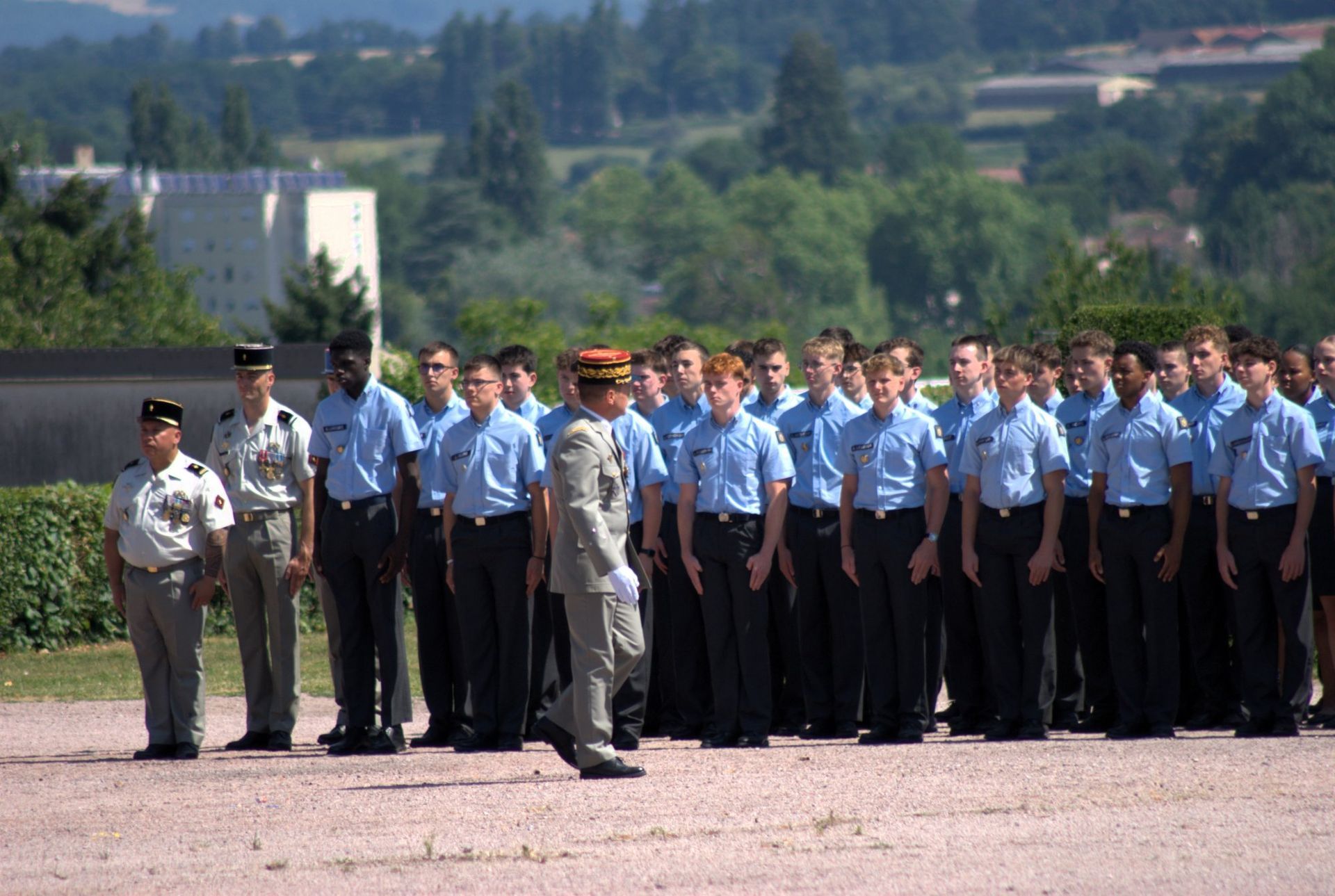 92 jeunes (âgés de 17 à 25 ans) de la 1ère compagnie d'instruction de l'école de gendarmerie de Dijon, incorporés le 11 juillet, étaient présentés au drapeau, sous le commandement du Colonel Pierre EGRET, commandant en second l'école.