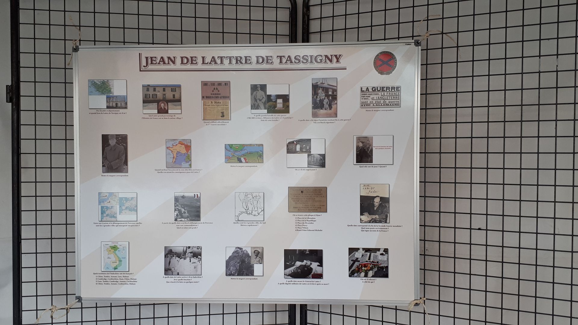 La Fondation animait l'atelier histoire et mémoire intitulé "Jean de Lattre de Tassigny"; sa vie et sa carrière étaient évoquées sur un panneau magnétisé et le jeu consistait à identifier avec des magnets les personnes, les événements et les lieux par des photos et des cartes.