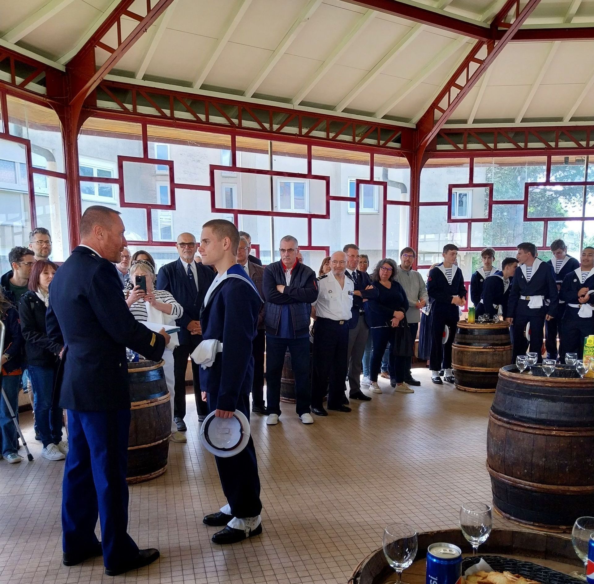 A l'invitation du Capitaine de vaisseau Rémi de MONTEVILLE (commandant de la marine à Paris) et de l'enseigne de vaisseau 1ère classe (R) Hugo CHARRIER (chef de centre de la PMM Gaspard Monde de Beaune), sous la présidence du LCL. Etienne ROYAL (DMD adjoint 21).