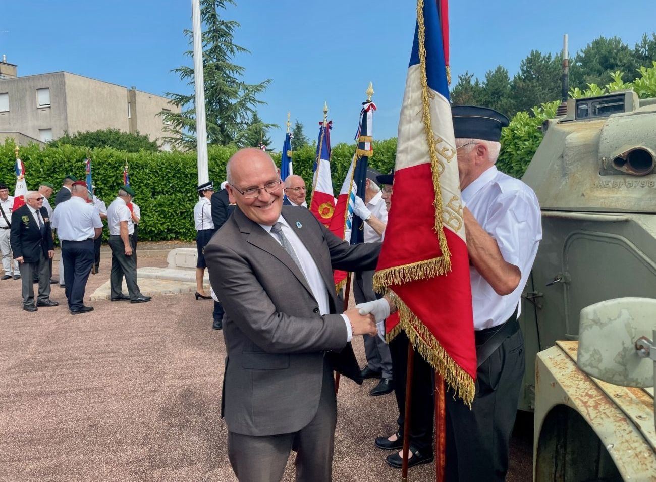 photo officielle avec les porte-drapeaux