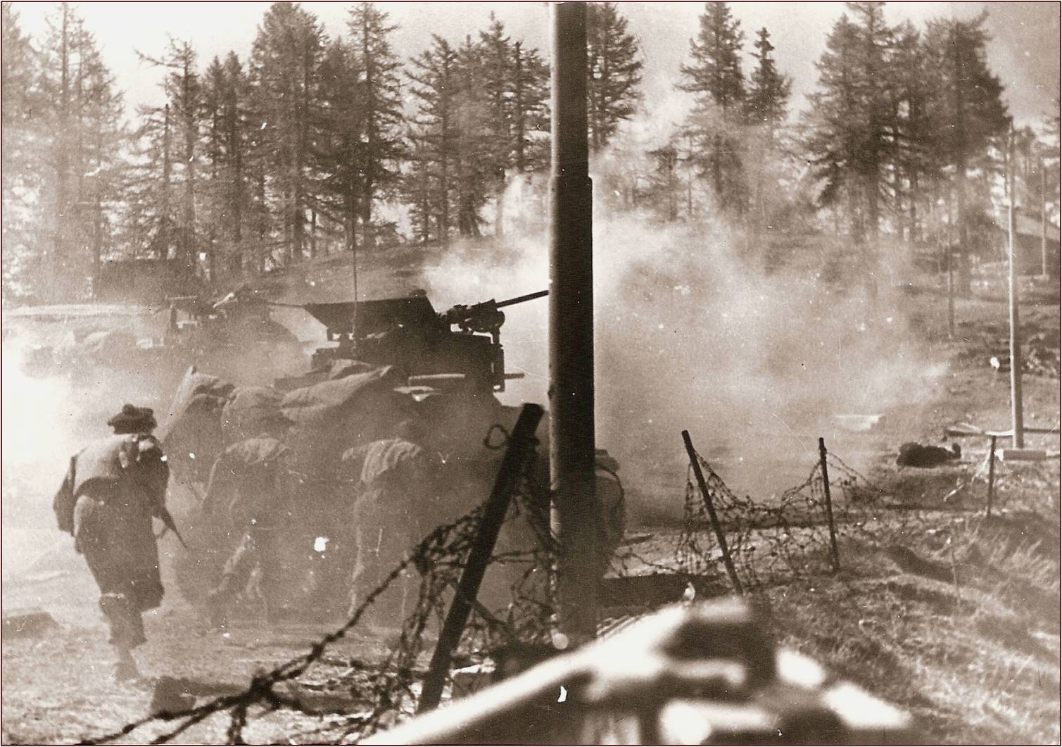 Le col de LA LOMBARDIE (2350 m), déneigé par le Génie Français, est emprunté au lieu du col de TENDE détruit par les Allemands.